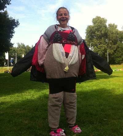 Naast ons loopt het riviertje "de Regge", Hier kunnen we naartoe om vlotten te bouwen of op de trampoline springen.